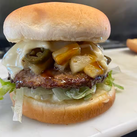 Pickles, Lettuce/ and Sauce. Tomato and Onion on Request.